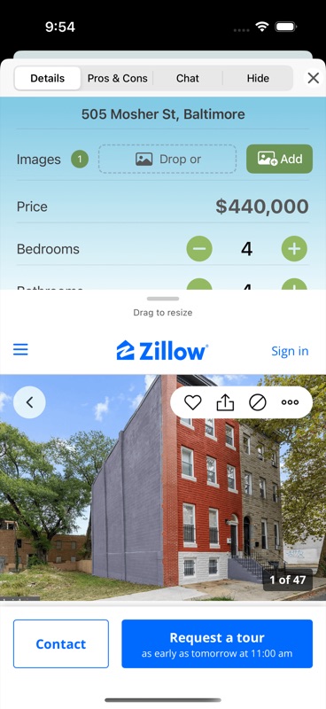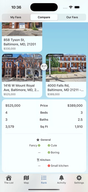 Stop texting links back and forth. Paste listings from any major site (Zillow, Redfin, etc.) into your shared space to see everything in one clean, unified view.
